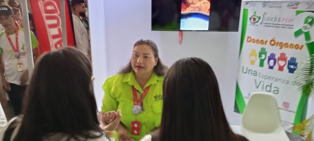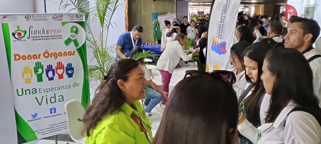 El stand de Fundavene se convirtió en un espacio de encuentro, reflexión y esperanza, donde se ofreció orientación a profesionales de la salud, estudiantes y público general.Como parte de su agenda educativa, la presidenta Rosa George también ofreció una sesión educativa a los estudiantes de segundo año de Medicina de la Universidad Militar de Medicina, sembrando conciencia desde la formación académica sobre el valor ético y médico de la donación de órganos.